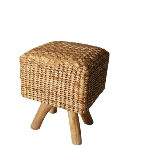 Teak with water hyacinth combinations material has been coated with termite and fungus resistant, finishing with clear glass melamine, very high quality sturdy perfect clean. Stool legs with teak wood.